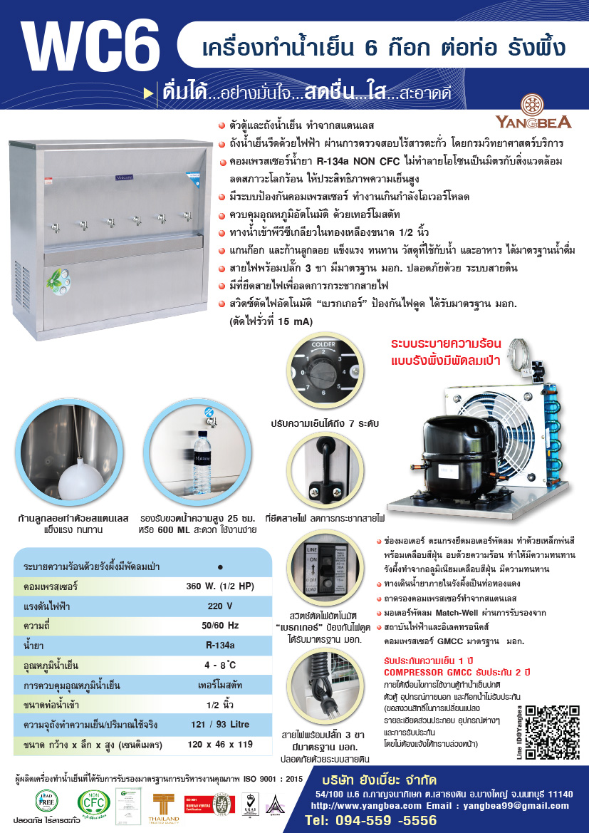 รายละเอียดการสั่งซื้อตู้ทำนํ้าเย็นสแตนเลส 6 ก๊อก WC6 แบบต่อท่อ ระบายความร้อนด้วยพัดลมดูดเป่ารังผึ้ง
