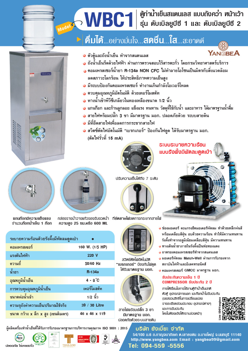 รายละเอียดการสั่งซื้อตู้น้ำเย็นแบบขวดคว่ำ 1 ก๊อก WBC1 ระบายความร้อนด้วยพัดลมดูดเป่ารังผึ้ง
