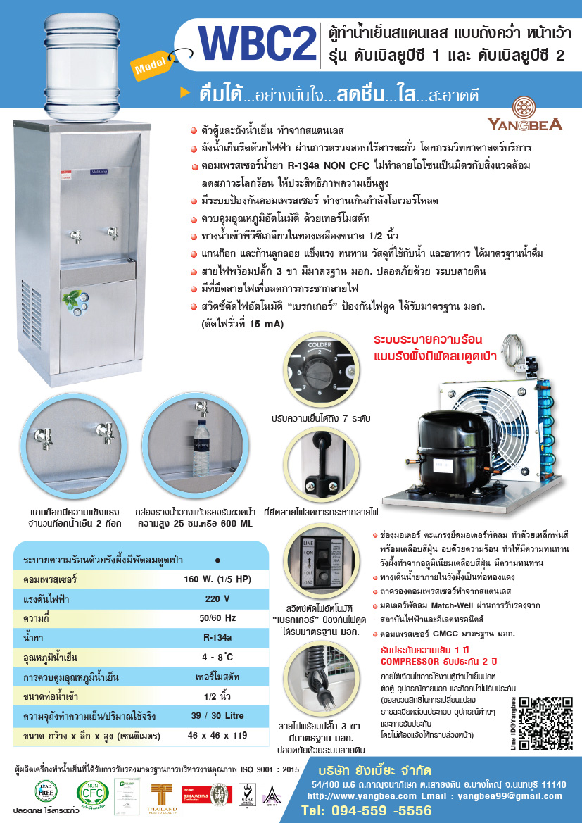 รายละเอียดการสั่งซื้อตู้น้ำเย็นแบบขวดคว่ำ 2 ก๊อก WBC2 ระบายความร้อนด้วยพัดลมดูดเป่ารังผึ้ง