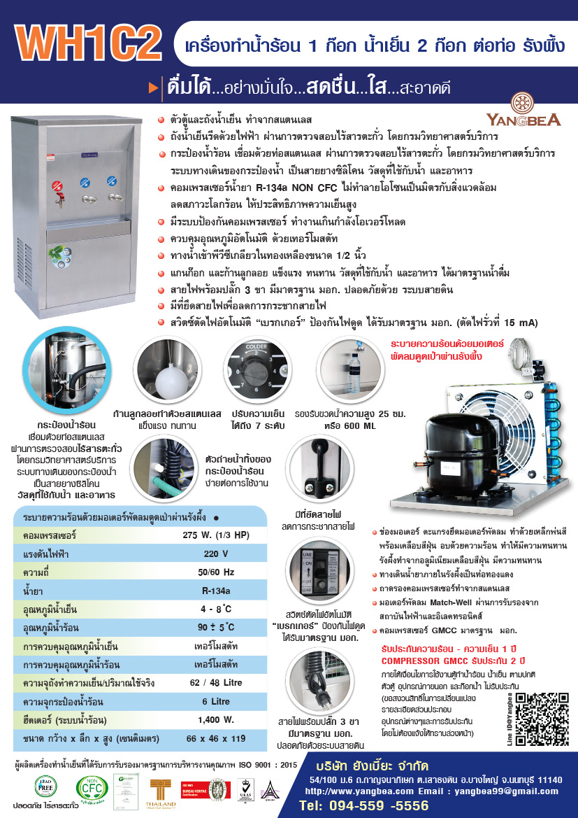 รายละเอียดการสั่งซื้อตู้ทำนํ้าร้อน น้ำเย็น WH1C2 (น้ำร้อน 1ก๊อก น้ำเย็น 2ก๊อก) สแตนเลส แบบต่อท่อ ระบายความร้อนด้วยพัดลมดูดเป่ารังผึ้ง