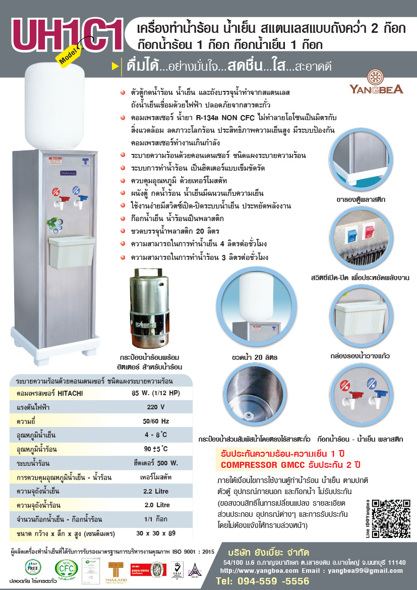 รายละเอียดการสั่งซื้อตู้ทำน้ำร้อน น้ำเย็นแบบขวดคว่ำ UH1C1 (น้ำร้อน 1ก๊อก น้ำเย็น 1ก๊อก)