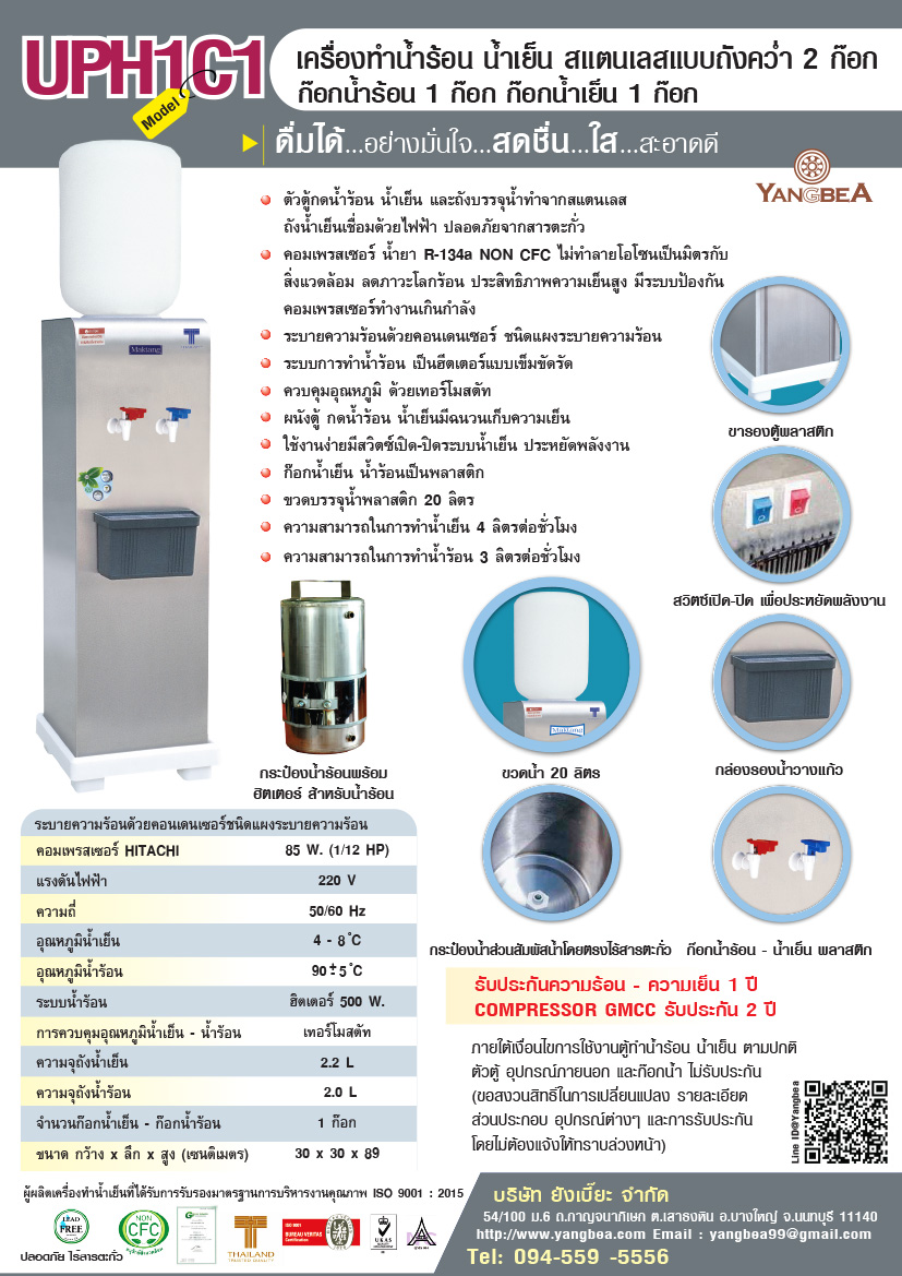 รายละเอียดการสั่งซื้อตู้ทำน้ำร้อน น้ำเย็นแบบขวดคว่ำ UPH1C1 (น้ำร้อน 1ก๊อก น้ำเย็น 1ก๊อก)